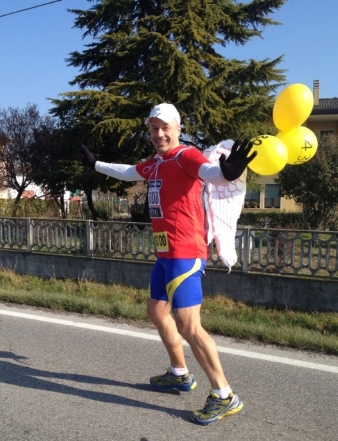 At 5km I saw my 4:30:00 pacer, Domenico. He and his pacers run with wings since they consider themselves Angels for the marathoners.