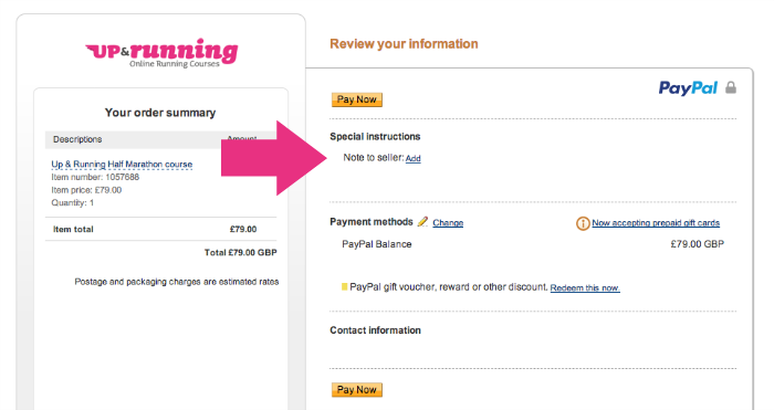 Note to seller section of the PayPal checkout.